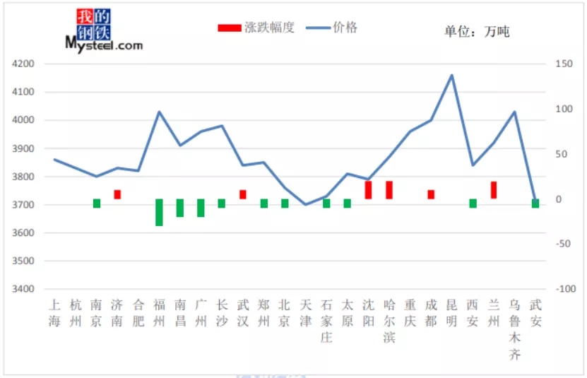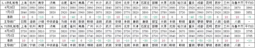 華北市場方面:本周京津冀地區(qū)熱軋板卷價格窄幅震蕩下行,截止發(fā)稿,各區(qū)域市場價格在3690-3750元/噸區(qū)間,較上周五環(huán)比下調(diào)0-30元/噸。