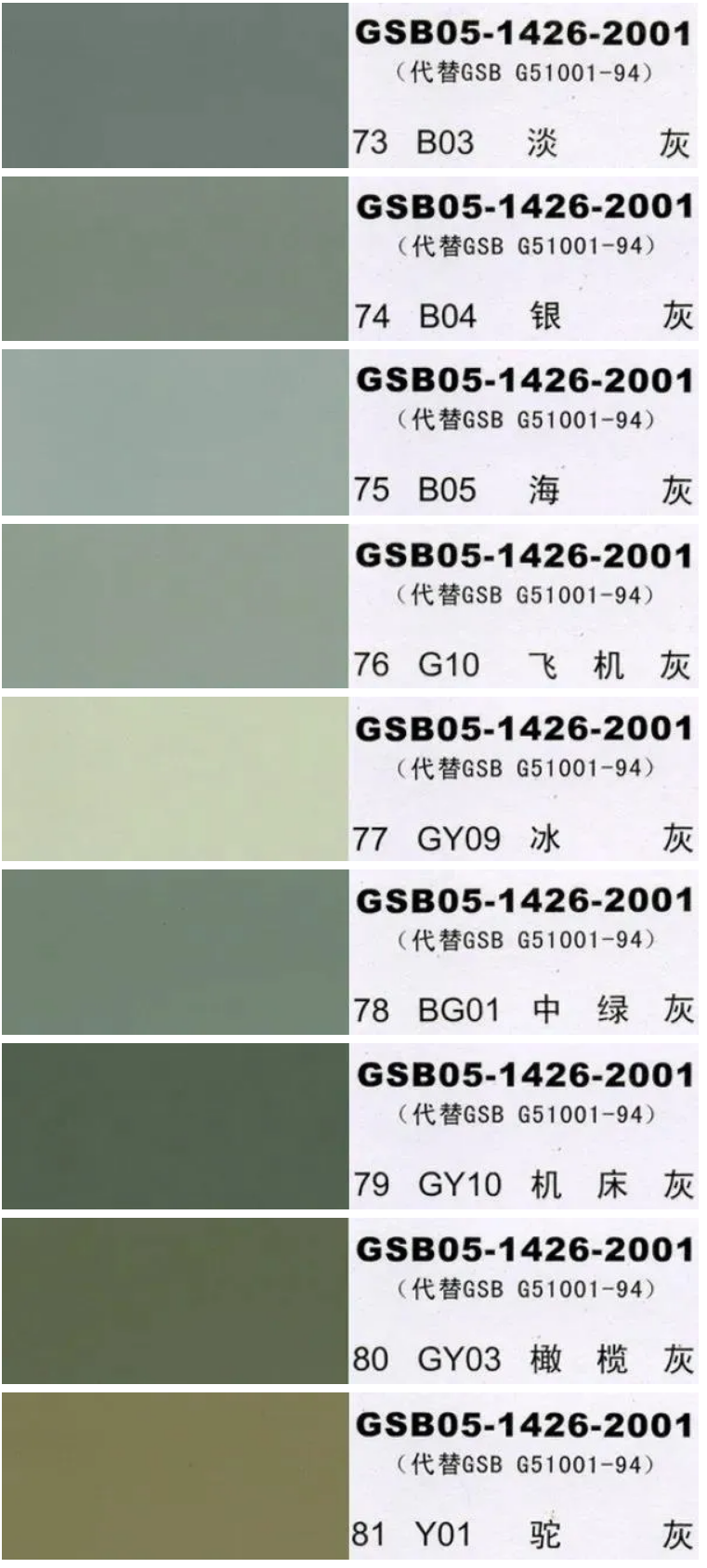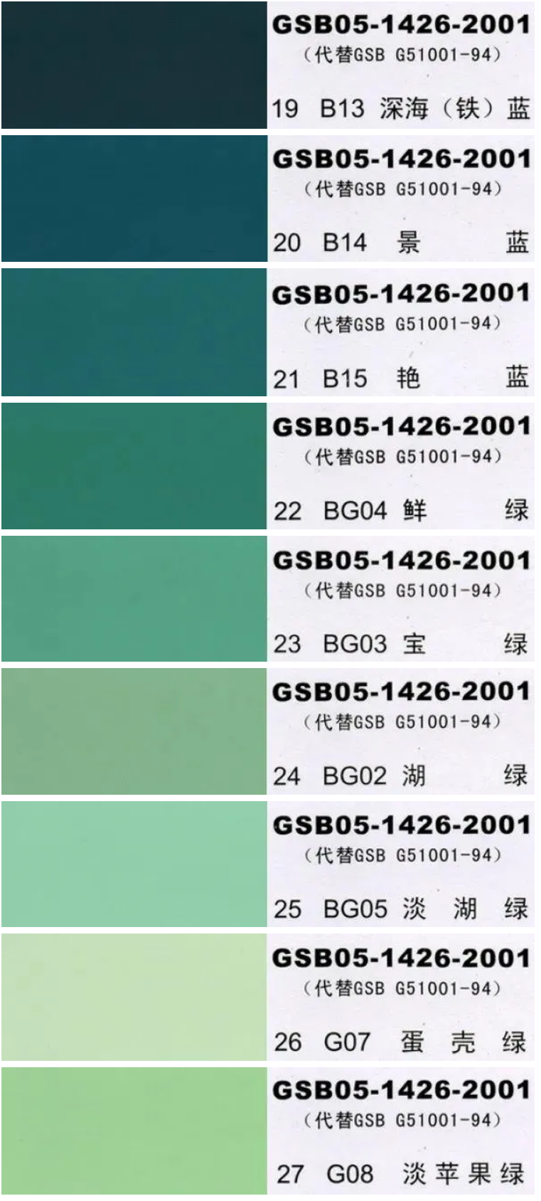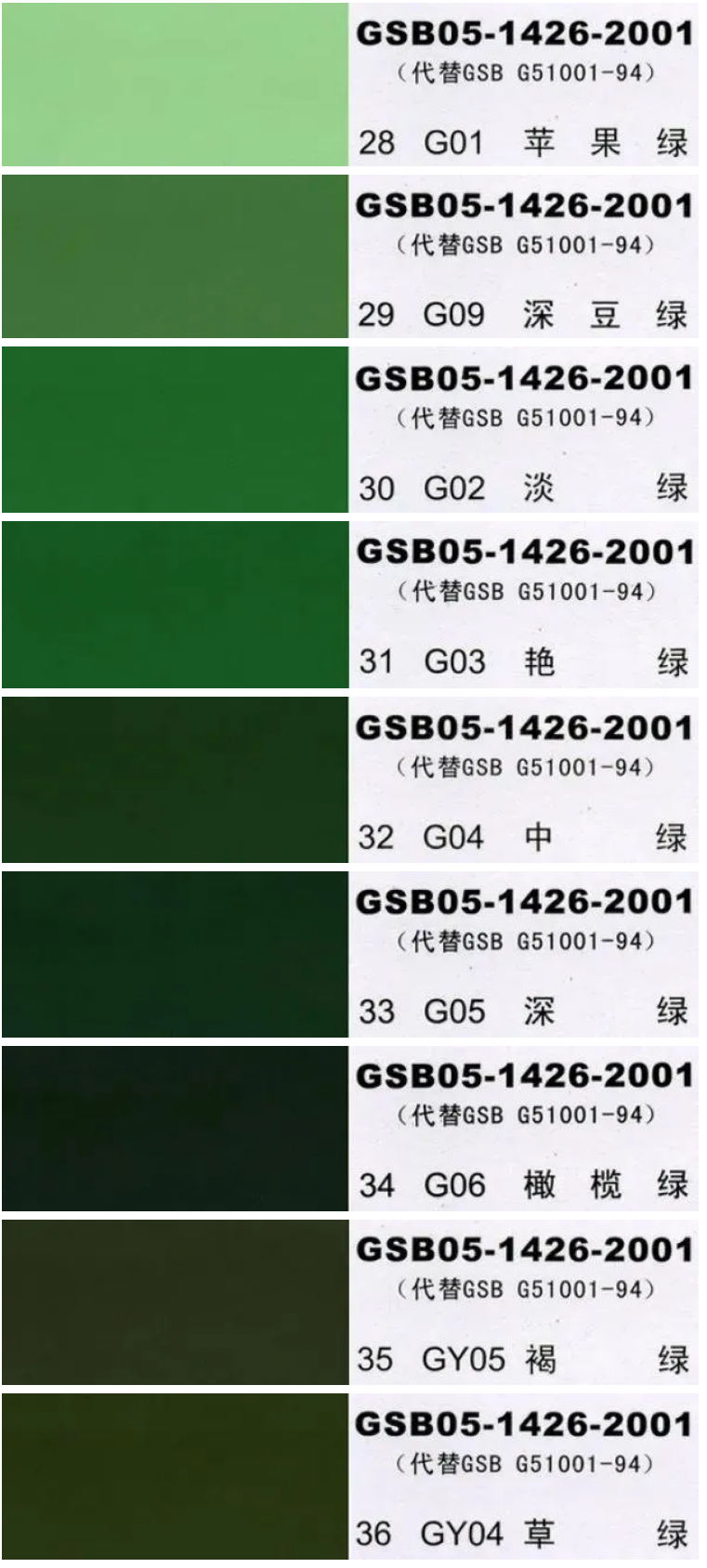 【1】國(guó)標(biāo)色卡-漆膜顏色標(biāo)準(zhǔn)樣卡簡(jiǎn)介(GSB05-1426-2001);全國(guó)涂料和顏料標(biāo)準(zhǔn)化技術(shù)委員會(huì)修訂,含83種顏色,光面效果。每個(gè)顏色都有國(guó)家統(tǒng)一標(biāo)準(zhǔn)的編號(hào),適用于油性涂料方面使用。