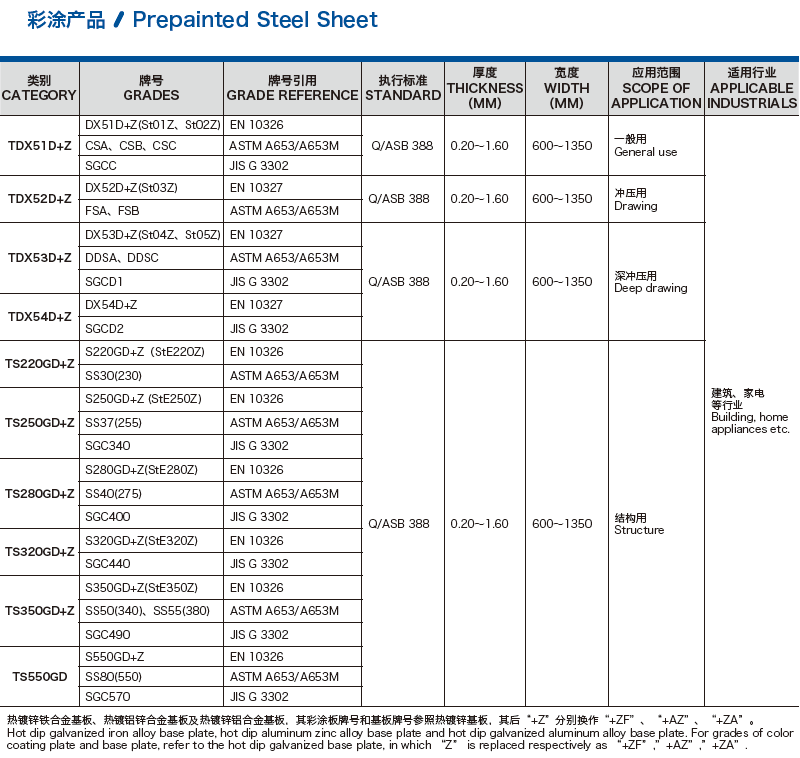 普通用、結(jié)構(gòu)用、沖壓及深沖用、高強(qiáng)彩涂板(屈服強(qiáng)度350MPa以上)